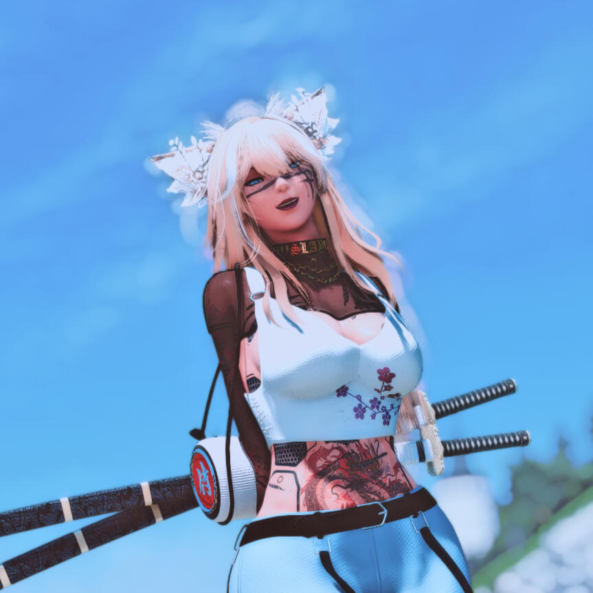 A blonde leopard from Ishgard. Calm and focus on the job, but a street kid at heart. Don't be afraid to approach her if you need a hired Merc.