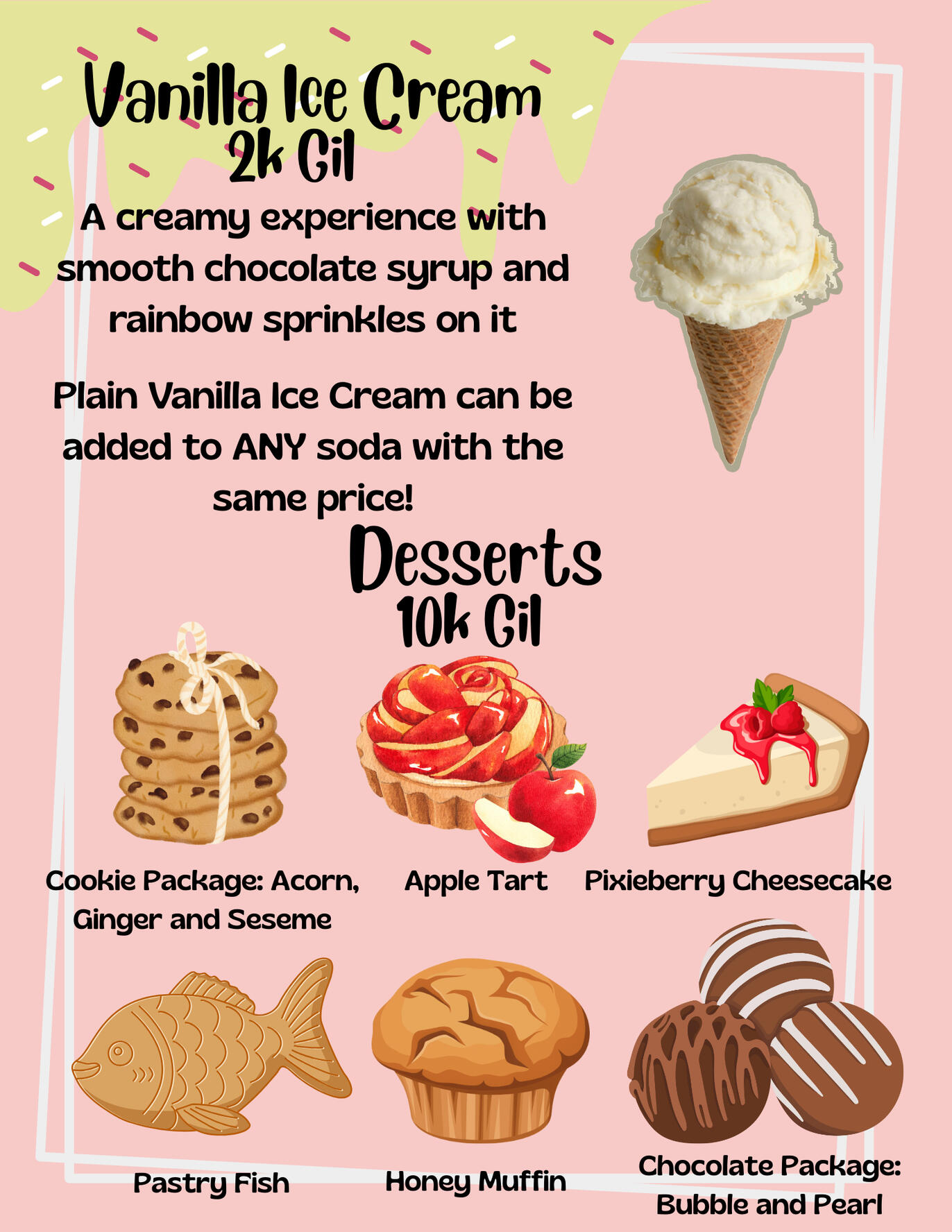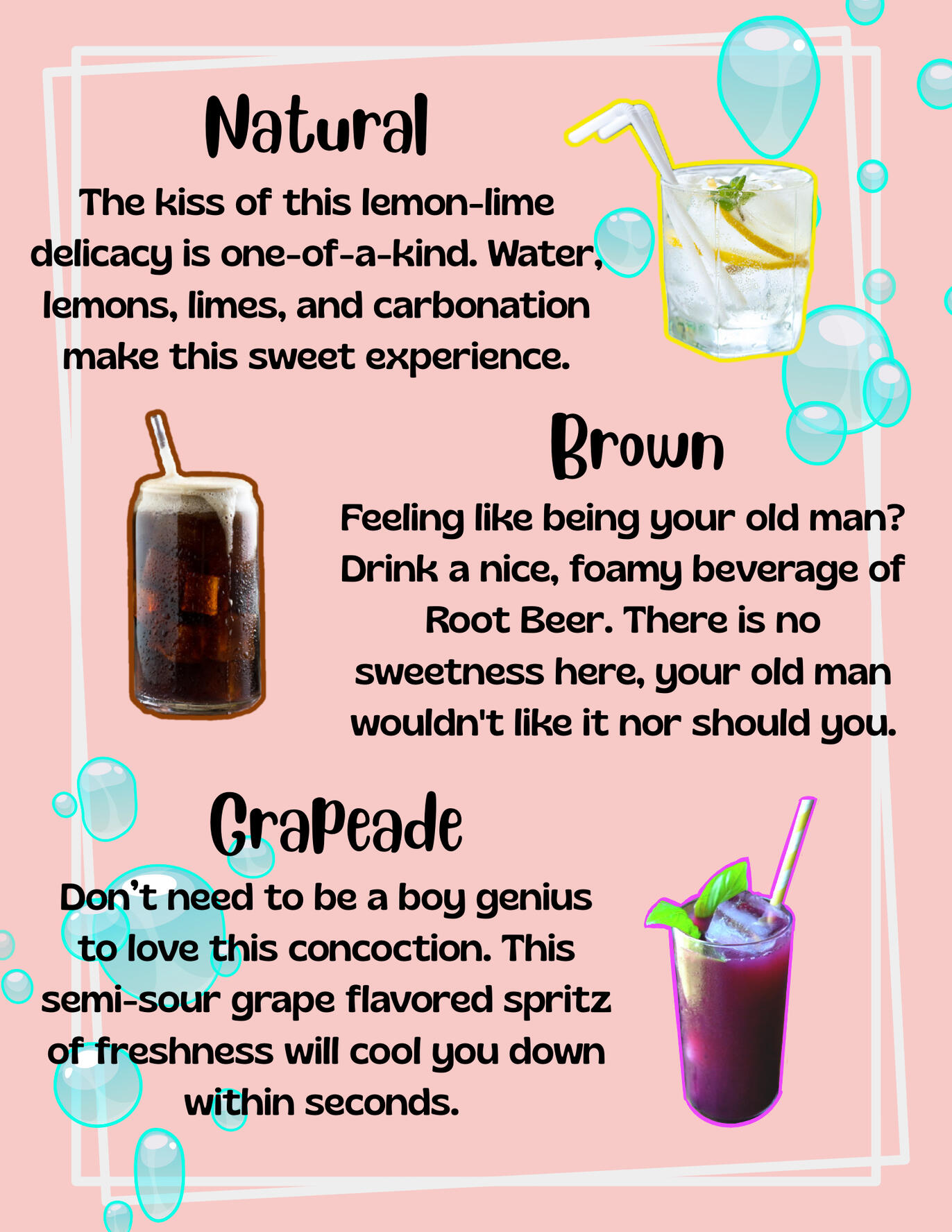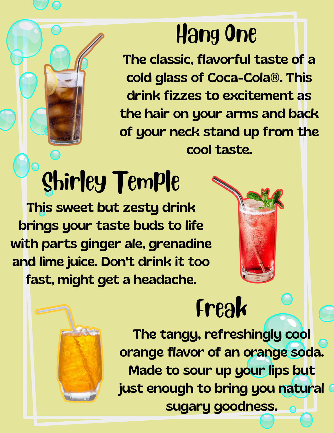 You found the Sodalicious Secret Menu!Now a few rules:1) Don't tell ANYONE! (Or try not to hehe)2) When you order off this menu, please DM your server or sodatender the item you wish to order.3) Have fun and this menu will always be in update. Congrats on being a cool kid!